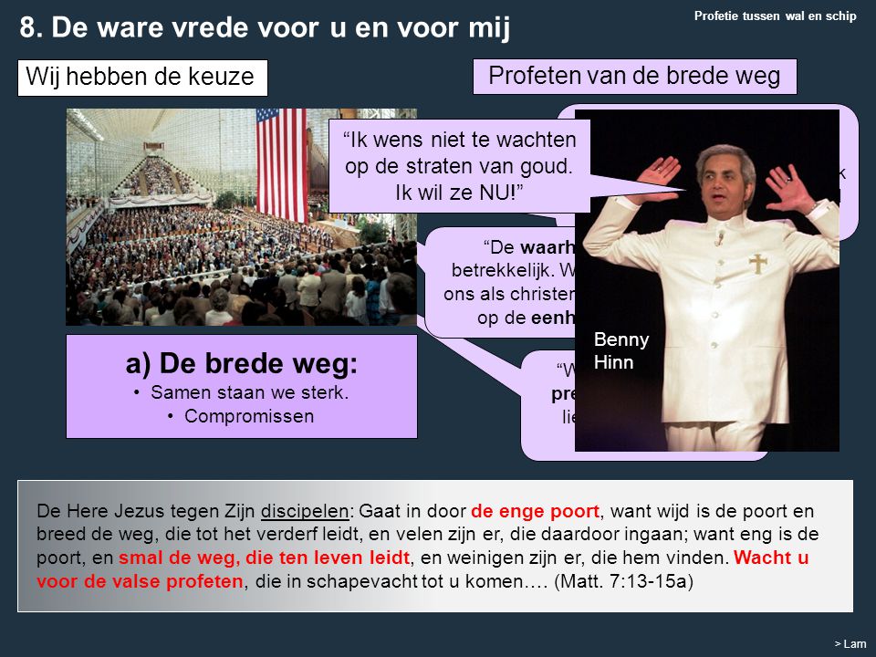 “Want er komt een tijd dat de mensen de heilzame leer niet meer verdragen, maar leraren om zich heen verzamelen die aan hun verlangens tegemoet komen en hun naar de mond praten. Ze zullen niet meer naar de waarheid luisteren, maar naar verzinsels” (2 Timotheüs 4:3-4).