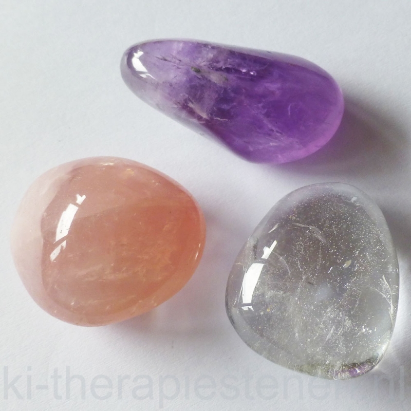 bergkristal, rozenkwarts en amethist bewerkt