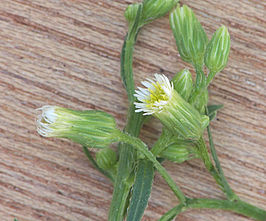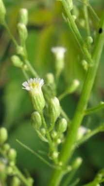 De smalle donkergroene bladeren staan afwisselend langs de stengel en zowel stengel als bladeren zijn borstelig behaard. De bloeitijd is van juni tot november. Na de bloei verandert de plant als het ware in een hoop wit dons. Er wordt zeer veel zaad gevormd: grote planten kunnen meer dan een kwart miljoen zaden produceren. De plant moet omzichtig behandeld worden, want hij bevat een stof die de huid irriteert; bovendien schijnt hij bij inwendig gebruik tot vergiftiging te kunnen leiden. Als bijdrage aan de composthoop voegt hij wat stikstof toe.