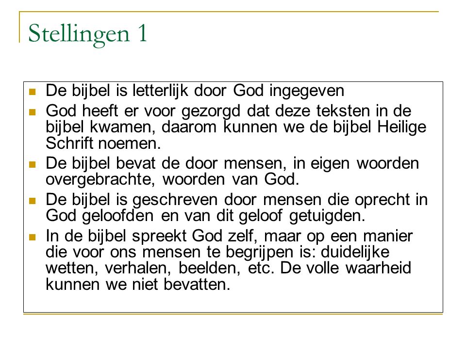 De Bijbel is ons door de eeuwen heen ongeschonden overgeleverd. Maar met de vraag of hij ons ook onge-schonden bereikt in onze eigen taal, is een andere. Onze voorouders hebben hun best gedaan dat zo goed mogelijk te doen. Moderne vertalers hangen echter andere opvattingen aan. Daarom zijn de modernste verta-lingen niet altijd de beste voor eigen bijbelstudie, al leest een moderne vertaling vaak veel prettiger.