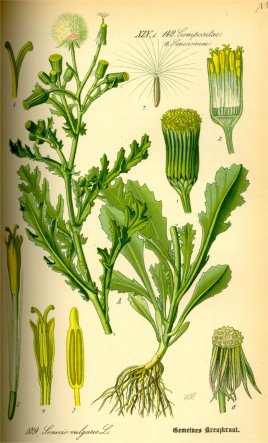 KLEIN KRUISKRUID (Senecio vulgaris) werd in vroeger tijd geprezen om zijn geneeskrachtige eigenschappen. De bladeren werden in water of wijn gekookt als middel tegen ‘pijn in de maag die uit de gal voortvloeit’, zoals de beroemde arts-kruidkundige John Gerard schreef. Vanwege deze en andere heilzame eigenschappen namen de Pilgrimfathers de plant mee toen ze in het begin van de zeventiende eeuw naar Amerika vertrokken. Vijftig jaar later was Klein kruiskruid daar al een onkruid geworden.