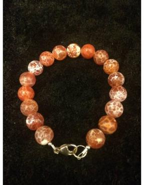 Agaat is een variant chalcedoon en kan wit, grijzig, blauw, roodachtig en verschillende bruintinten zijn met smalle banden in verschillende kleuren. Afhankelijk van de kleur en banden onderscheidt men verschillende varianten zoals: boomagaat, Botswana agaat, kantagaat, mosagaat, snakeskin of slangenhuid agaat, turitella agaat en vuuragaat. De steen is licht doorschijnend en heeft een matte tot zijdeglans. Voor meer info over agaat, zie artikel “agaat” in de categorie  ‘Sieraden, juwelen, mineralen en edelstenen’.